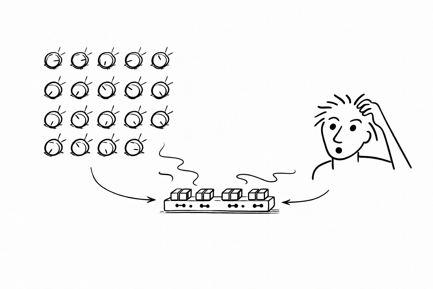 The process is iterative: adjust, measure, adjust again. Every chip is different. Device variability means the voltages that work on one device are a poor starting point for the next. The parameter space is vast. Doing it by hand, across 64 devices, is not a realistic option.